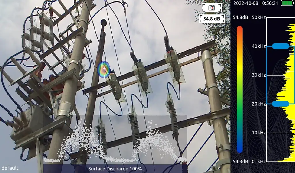 Partial discharge, corona og lysbuer genererer ultralyd, som kan visualiseres med kameraet.